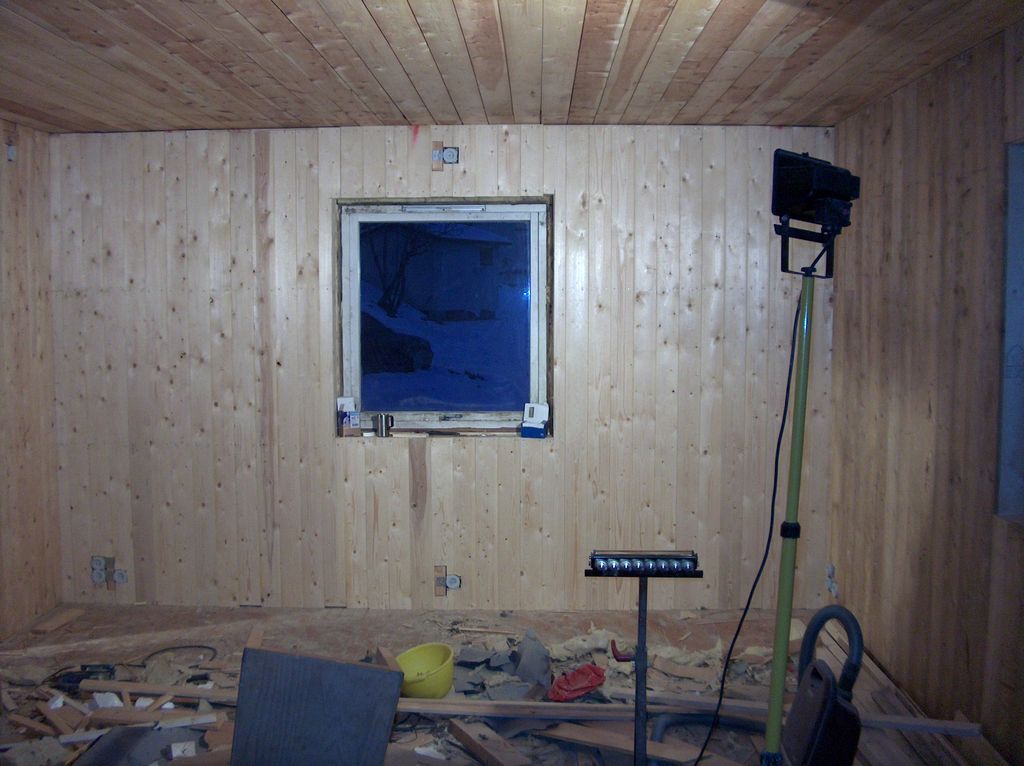 Rupanel ferdig kledd vegg nord. Her ble det spandert nytt panel, da det ble for lite av det gamle, som er gjenbrukt. Ble nesten fint synes jeg selv..