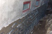 Hvor langt opp jeg skal isolere, har jeg ikke bestemt foreløpig, men det blir antakeligvis så langt opp som mulig til at jeg får festet grunnmursplasten over og inn mot grunnmuren. Har hørt fra andre at grunnmursplasten siger litt ettersom tilbakefylte masser setter seg, så for vinteren blir det bare en provisorisk festing for å hindre at det kommer vann (i en eller annen form..) bak plasten, så kan det festes skikkelig til våren/sommeren.