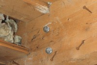 Totalt måtte det jekkes ca 5 cm før gulvet i øverste halvdel av huset var i vater. Til å legge under åsene i etasjeskillet passet det bra med 2-toms plankebiter.